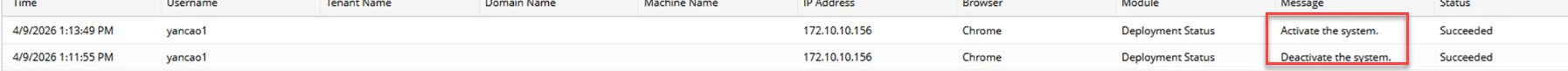 Performed a manual switchover for a DR test. All went well, but audit is looking for specific time it happened. Where/can I find those Active/Inactive entries? I see the audit log actions, but those just show the Tenant being switched, not technically which device it was Active on.